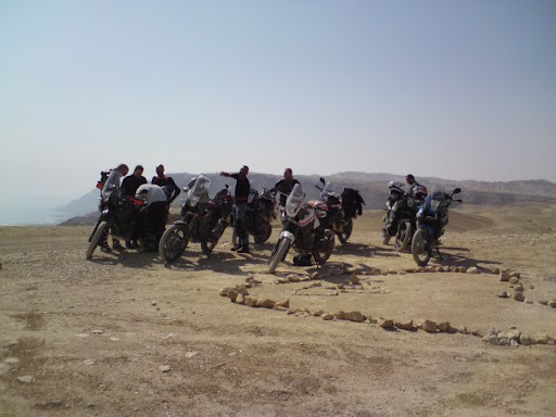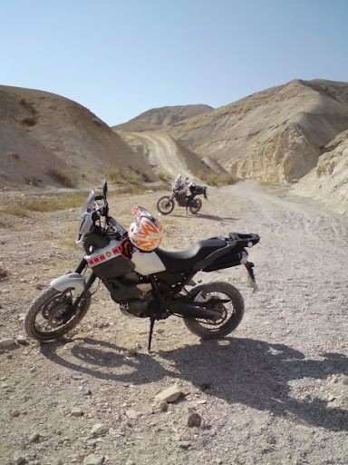 The problem was that eventually, the desert hit us. But I'm getting ahead of myself. Eight of us met at a gas station on the northern tip of the dead sea. http://lh3.ggpht.com/_h_hIYKggHWM/Su...1qeEhnvQ/1.JPG We headed out to the cliffs of Dragot. An observation point on the cliffs that overlook the dead sea from the west. We stopped along the way for our first breakdown of the day. http://lh6.ggpht.com/_h_hIYKggHWM/Su...gYzGomBg/2.jpg http://lh3.ggpht.com/_h_hIYKggHWM/Su...5o68Ao4Y/3.jpg One bike suffered a broken plug. This was fixed by replacing the plug with a small metal piece to connect the two wires. After that we got to the observation point. First we photographed the bikes: http://lh4.ggpht.com/_h_hIYKggHWM/Su...-fr9eznE/4.jpg http://lh3.ggpht.com/_h_hIYKggHWM/Su...wH69CYJM/6.jpg The we remembered that the view is on the other side. http://lh5.ggpht.com/_h_hIYKggHWM/Su...7P8H44XA/5.jpg We moved on and met a little descent (the pictures doesn't do it justice, there are a couple of steps in the middle) http://lh3.ggpht.com/_h_hIYKggHWM/Su...WwrzNQaU/8.jpg http://lh3.ggpht.com/_h_hIYKggHWM/Su...vpgGaozY/7.jpg Wondering if we're on track http://lh6.ggpht.com/_h_hIYKggHWM/Su...evHwTY18/9.jpg A Military helicopter on training. A few of those passed above us. http://lh6.ggpht.com/_h_hIYKggHWM/Su...JrVJetg/10.jpg Since it's the desert, you have to make your own shade http://lh6.ggpht.com/_h_hIYKggHWM/Su..._m1CnWc/12.jpg Here's another nice little descent with a couple of us looking at it and thinking how to go down. http://lh5.ggpht.com/_h_hIYKggHWM/Su...mgcIPzk/13.jpg We wondered what's the best way to go downhill because just after the end of the downhill path, lies a patch filled with small gravel and a small bump. If you come to slow, this will happen: http://lh3.ggpht.com/_h_hIYKggHWM/Su...rgGH_vY/11.JPG http://lh6.ggpht.com/_h_hIYKggHWM/Su...RO8MJ8Y/14.jpg First off of the day. Kinda silly as far as offs go, but we have a strange ability to fall in the simplest of places :-P Not to long after that, yet another silly off. Not hitting the gas hard enough will do that to you. (Note the rock that was just missed). http://lh3.ggpht.com/_h_hIYKggHWM/Su...tcGlnLY/16.jpg The rider wonders where did it go wrong :-) http://lh3.ggpht.com/_h_hIYKggHWM/Su..._2qzR1o/15.jpg Just after we picked the bike up and moved on, anther rider fell on that bump. This time we weren't so lucky. The bike fell flat on it's right side. Only this time not missing the rock. Rider wasn't hurt, but now we were in the middle of the desert with one broken water pump cover. Two guys headed out to where they could get a cellphone signal and to call a rescue truck while the rest of us stayed with the downed bike. While we waited, one of us managed to stitch the broken parts of the cover back on with the help of a plastic bottle and some duct tape. (Hopefully I'll have some photos of that as well, and I'll post them). With the water pump sort of back in shape, we decided to try and get the bike towards the nearest civilized place. So we set off again. Only to suffer yet another off. Again a very stupid one, this time by my own hands. http://lh3.ggpht.com/_h_hIYKggHWM/Su...pPhU_zs/17.jpg At this point the heat warning lamp on the bike with the broken water pump turned on. So we decided not to move it any more. To top it all off, the sun was starting to disappear. So the less capable riders of us (me included) rode on to the nearest road, since riding back in the dark will be to risky for us. We waited for the rescue truck on the road, while 2 guys (one with the downed bike and another one) waited for the rescue. The truck arrived just before sunset, but had to make it's way back out to the road in the dark (with one guy riding his Tenere in the dark as well). At the end we all arrived back home minus one Tenere that went straight to the shop for repairs :( I think that this photo montage sums up the trip really well: http://img2.tapuz.co.il/communafiles/38959714.jpg |